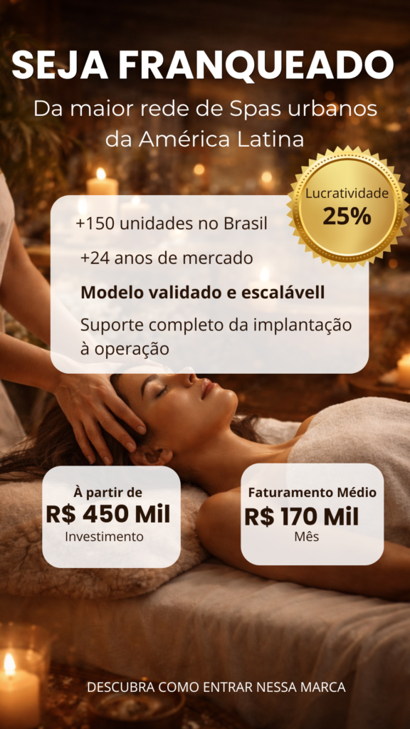 Oportunidade de investimento em franquia consolidada no segmento de bem-estar e estética, com forte presença nacional e modelo validado, agora em fase de expansão estratégica com abertura de novas unidades.