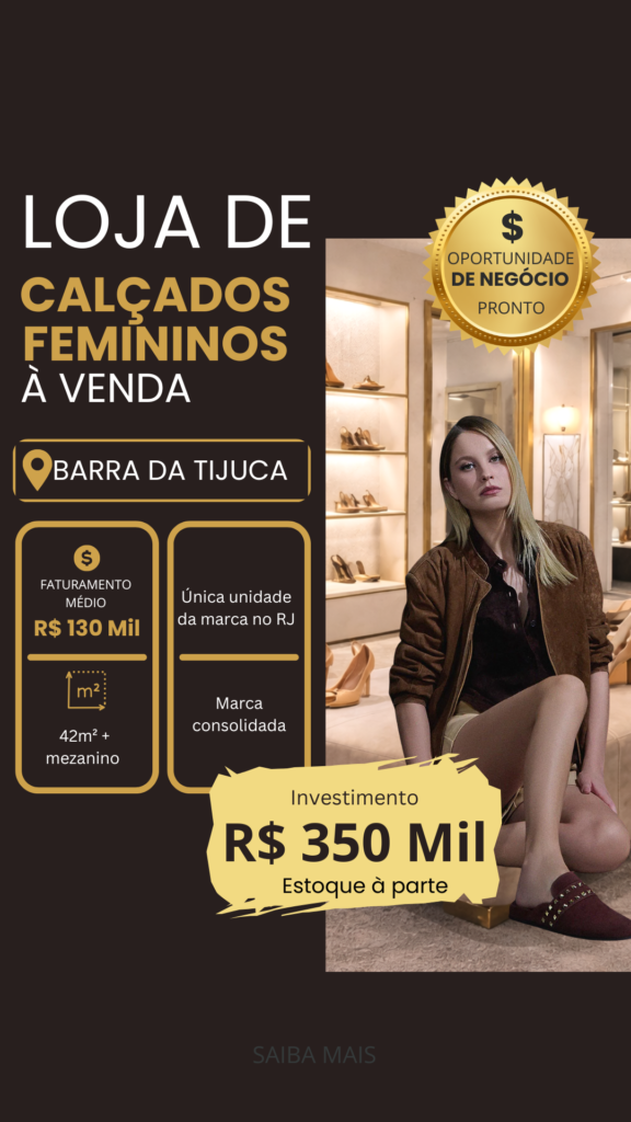 Franquia de Calçados Femininos à Venda | Barra da Tijuca – RJ Ponto Premium em Shopping | Exclusividade na Praça | Alto Potencial de Expansão