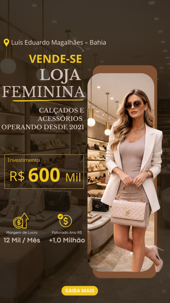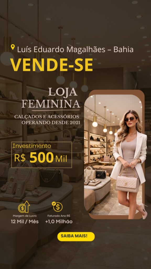 Operação de calçados e acessórios femininos em pleno funcionamento, localizada em ponto estratégico no Centro de Luís Eduardo Magalhães, em uma das regiões comerciais mais valorizadas da cidade. A loja está inserida em um polo consolidado de moda, próxima a marcas relevantes do segmento, com forte fluxo de público, excelente visibilidade e fácil acesso, incluindo estacionamento nas proximidades.