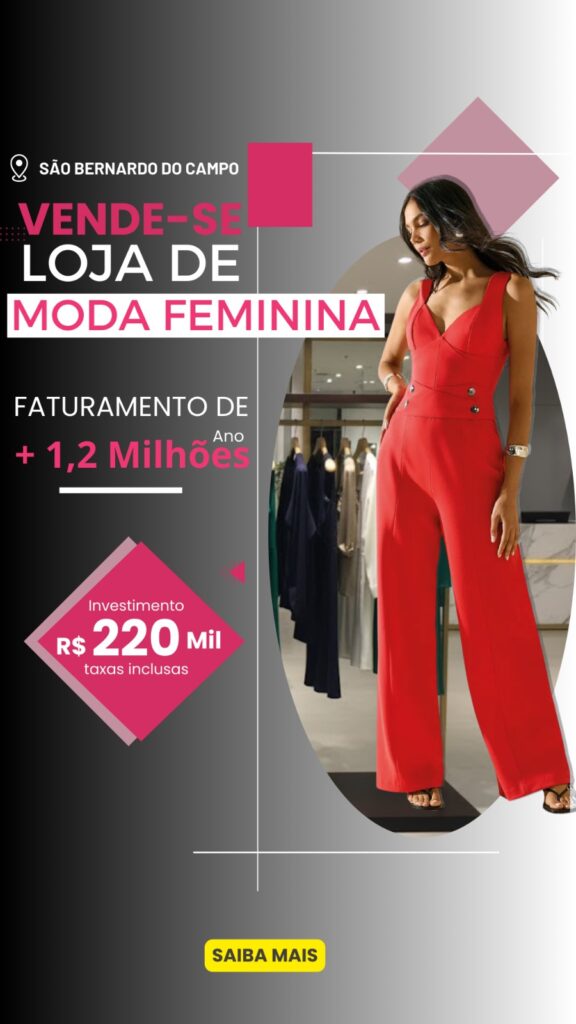 Oportunidade única de adquirir uma loja de moda feminina consolidada no Shopping Metrópole (São Bernardo do Campo – SP).