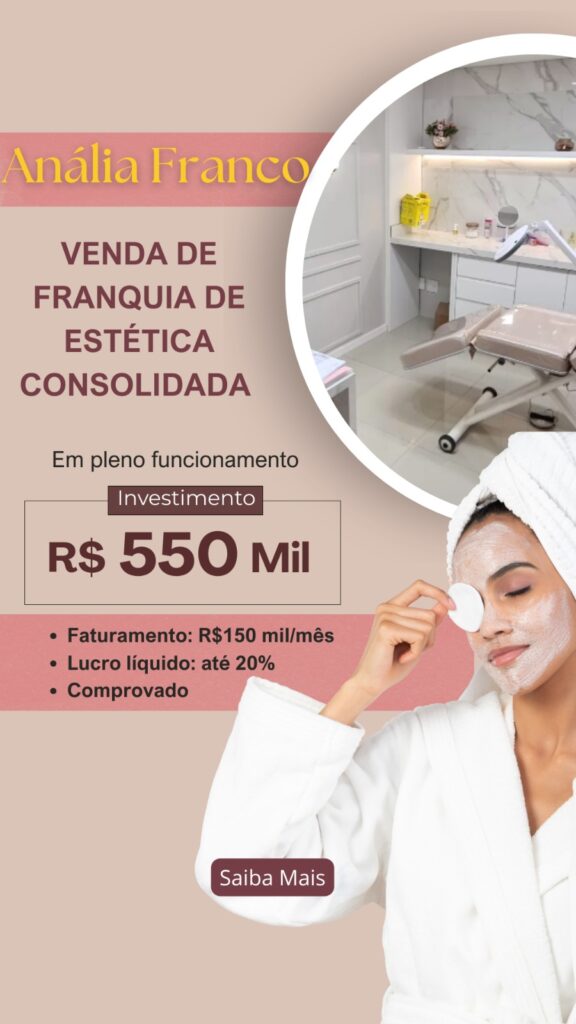 Venda de clinica especializada em estética facial e corporal, localizada no bairro Anália Franco. A clínica atende com excelência e possui mais de 9.000 clientes cadastrados, faturamento médio de R$ 150.000/mês e lucro líquido entre 15% e 20%.