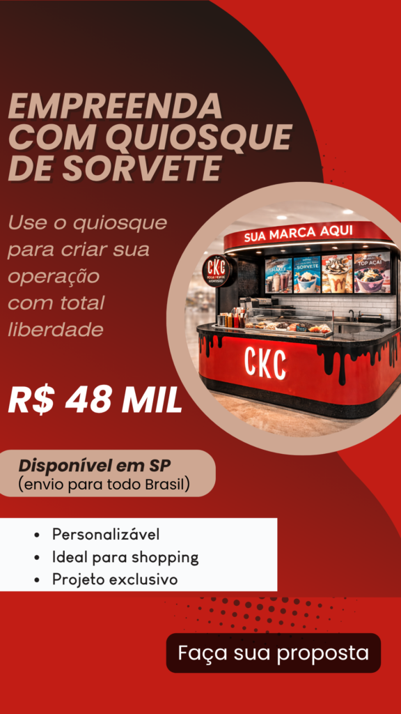 Quiosque Profissional para Sorvetes | Novo | Pronto para Montagem Monte Sua Marca | Baixo Investimento | Projeto Premium para Shopping