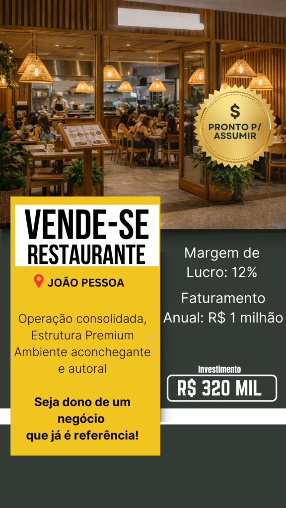 Restaurante Autoral à Venda em João Pessoa/PB – Marca Própria, Rentável e Projeto Franqueável